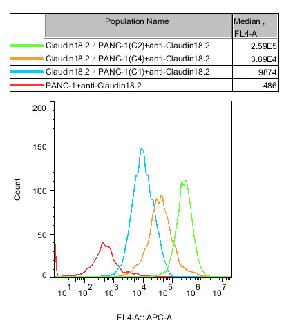 Claudin18是位于細胞膜表面緊密連接的主要成分,它在維持細胞極性和屏障功能以及促進耐酸能力方面起著重要作用。CLDN18的第一個外顯子可以選擇性剪接,形成兩個具有高度同源氨基酸序列的不同剪接突變體(CLDN18.1和CLDN18.2)。跨膜蛋白CLDN18由兩個細胞外環(huán)、四個跨膜結構域和一個細胞質(zhì)結構域組成。 |