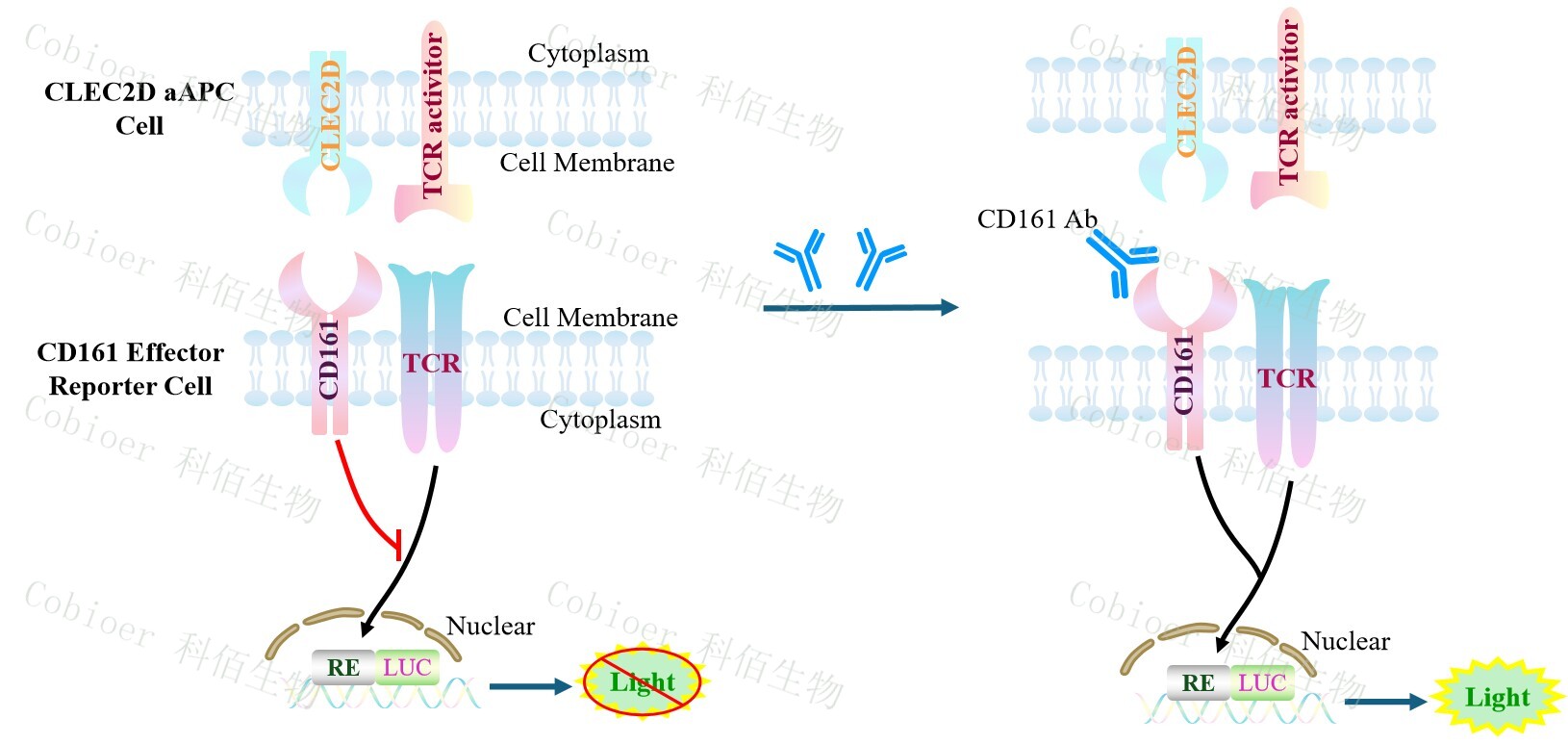 CD161 Effector Reporter Cell 報告基因藥靶模型很好的模擬了體內 CD161 的信號轉導 過程,原理見下圖所示。