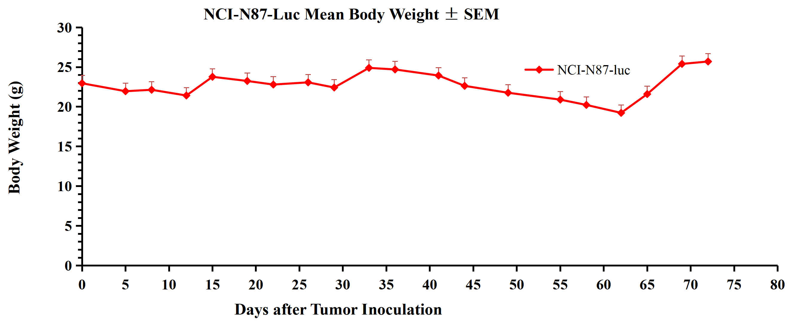 Figure 3. NCI-N87-Luc Mean Body Weight ± SEM.