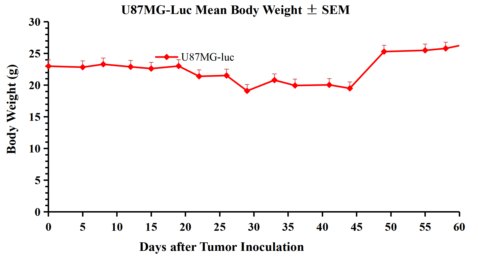 Figure 3.U87MG-Luc Mean Body Weight ± SEM.