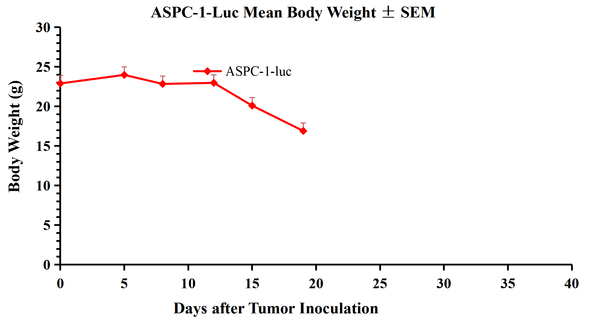Figure 3. ASPC-1-Luc Mean Body Weight ± SEM.
