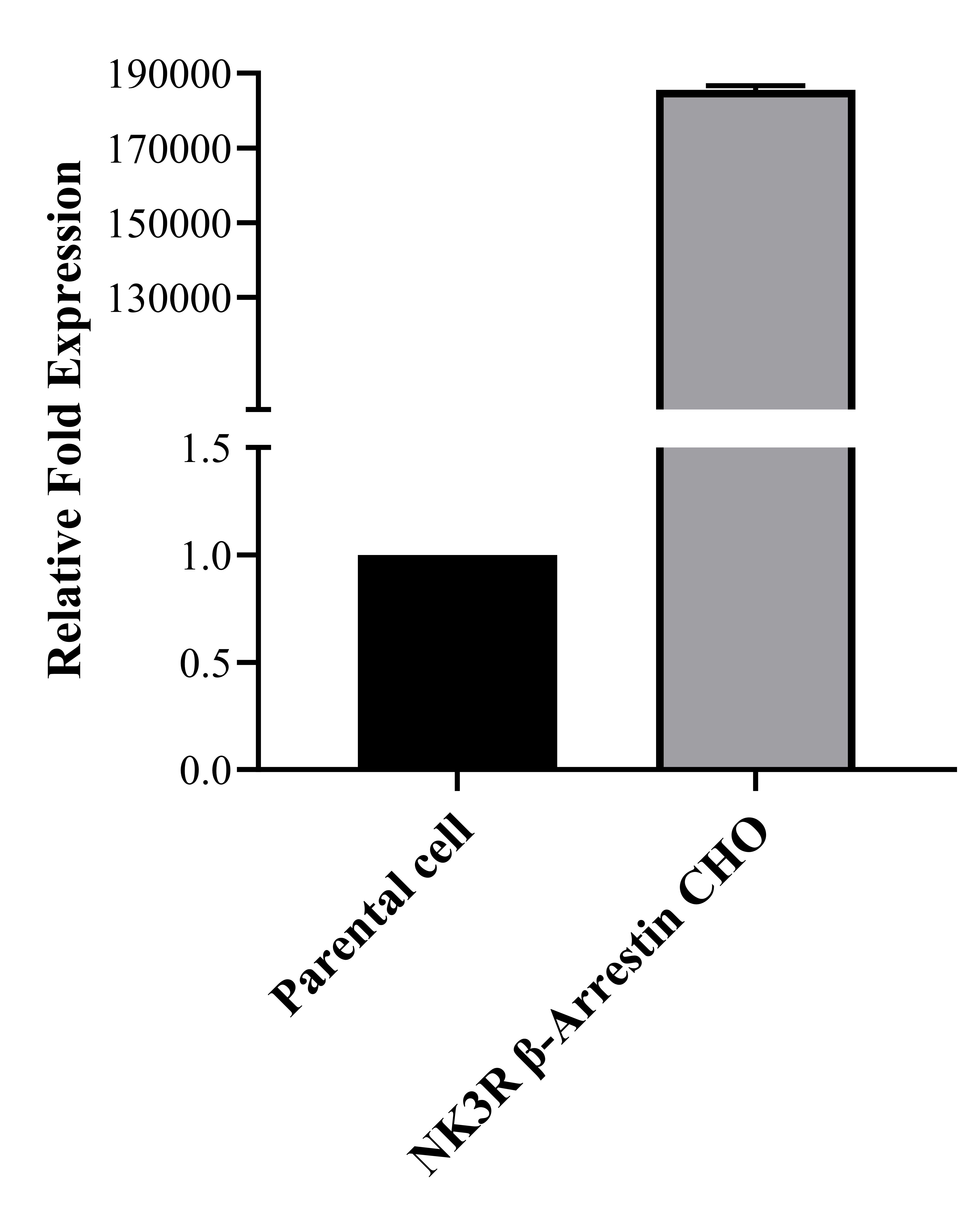 NK3R β-Arrestin CHO 報告基因藥靶模型很好的模擬了體內(nèi) NK3R/β-Arrestin 的信號轉(zhuǎn) 導過程,原理見下圖所示。當缺乏配體刺激時,β-Arrestin 不與 NK3R 結(jié)合,融合β-Arrestin 的熒光素酶處于失活構象,當 NK2R 遭遇配體刺激時,融合熒光素酶報告基因的β-Arrestin 被招募,使熒光素酶報告基因處于激活狀態(tài),加入其底物后發(fā)光信號增強。![]() Figure 1. NK3R β-Arrestin CHO 細胞模型原理圖 |