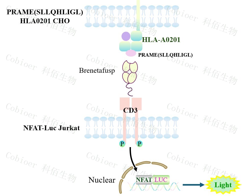 HLA-A*0201-PRAME 復合物是人類白細胞抗原(HLA)Ⅰ類分子與 PRAME 抗原肽的復合體,屬于主要組織相容性復合體(MHC)Ⅰ類家族成員。該復合物常用于 T 細胞受體 (TCR)療法,通過激活 T 細胞以識別并殺傷腫瘤細胞,原理見下圖所示。