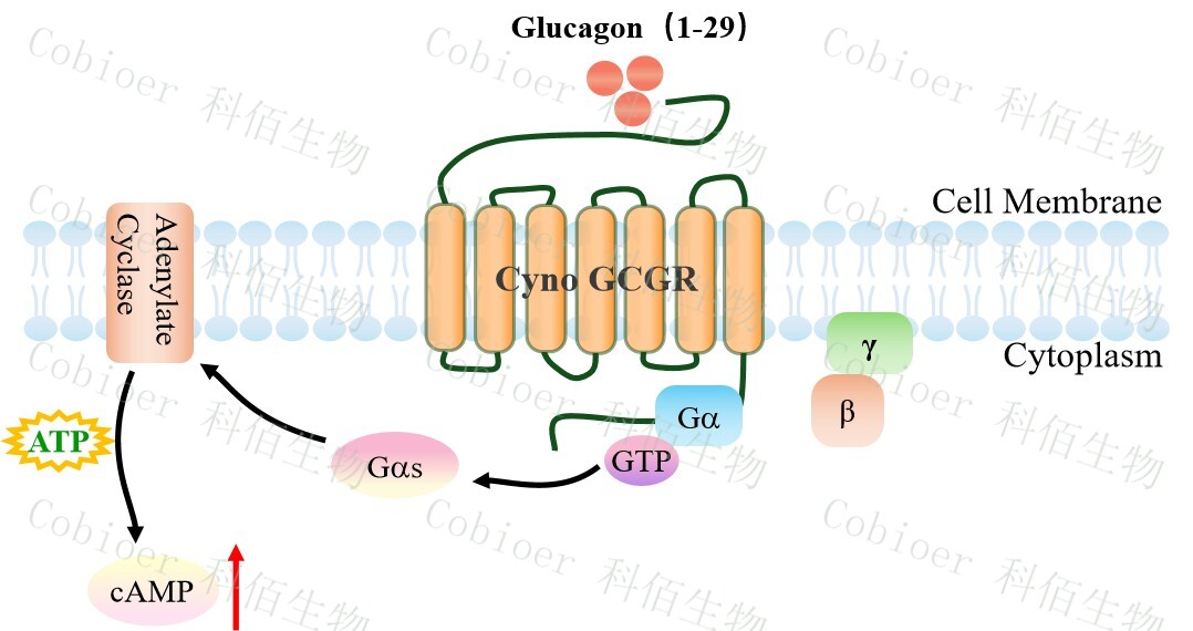 Cyno GCGR CHO 藥靶模型很好的模擬了體內(nèi) GCGR 的信號轉(zhuǎn)導(dǎo)過程,原理見下圖所示。
