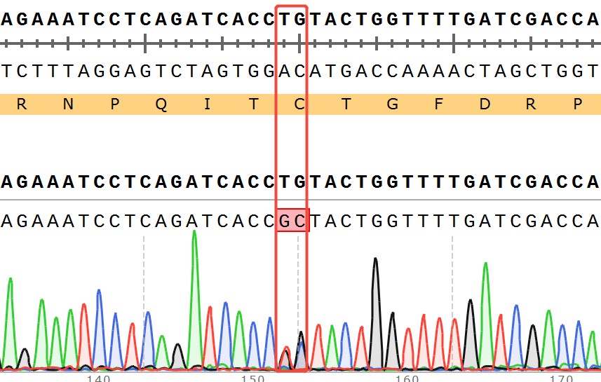 WRN[C727A](Heterozygous,AF%:50) Isogenic HCT116 藥靶細(xì)胞,通過基 因編輯的方式將 WRN 的 727 位氨基酸胱氨酸(C)突變?yōu)楸彼幔ˋ)。![]() Figure 1. WRN[C727A](Heterozygous,AF%:50) Isogenic HCT116 原理示意圖 |