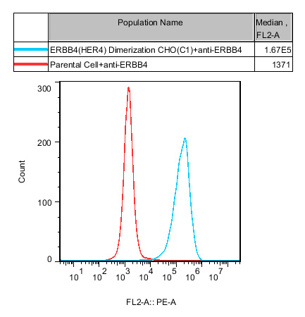 ERBB4(HER4) Dimerization CHO 報(bào)告基因藥靶模型很好的模擬了體內(nèi) ERBB4 的信號(hào)轉(zhuǎn)導(dǎo)過(guò)程,原理見(jiàn)下圖所示。![]() Figure 1. ERBB4(HER4) Dimerization CHO 細(xì)胞模型原理圖 |