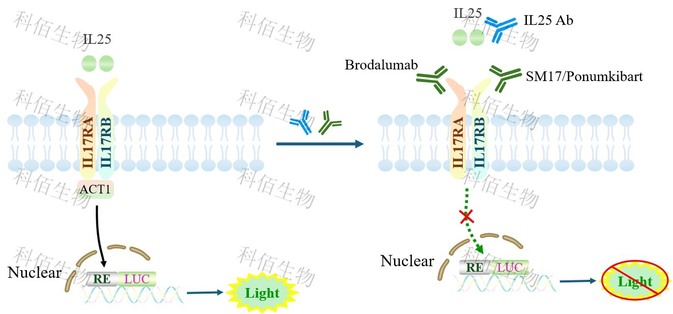 IL25 Effector Reporter Cell(Adherent)報告基因藥靶模型很好的模擬了體內(nèi) IL25 的信號轉(zhuǎn)導過程,原理見下圖所示。![]() Figure 1. IL25 Effector Reporter Cell(Adherent)細胞模型原理圖 |