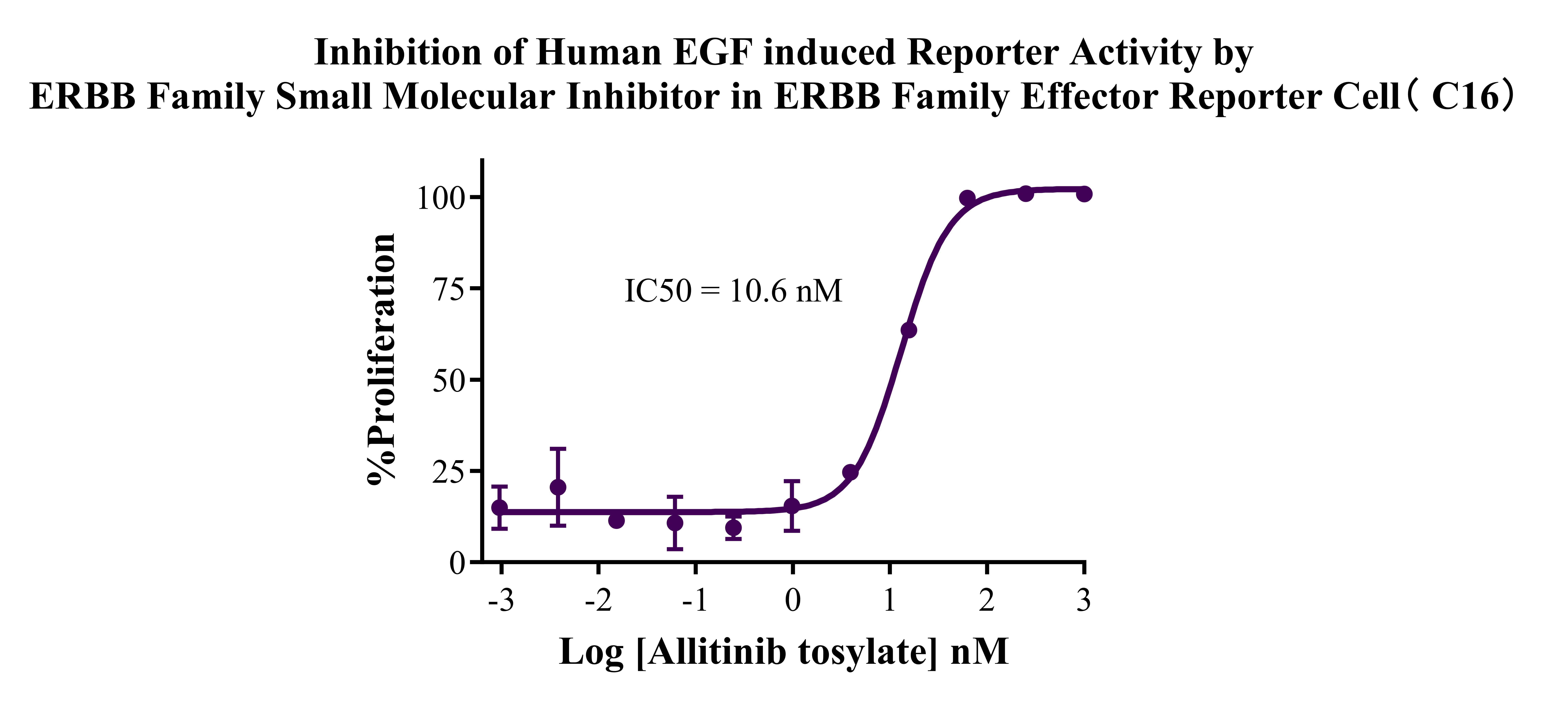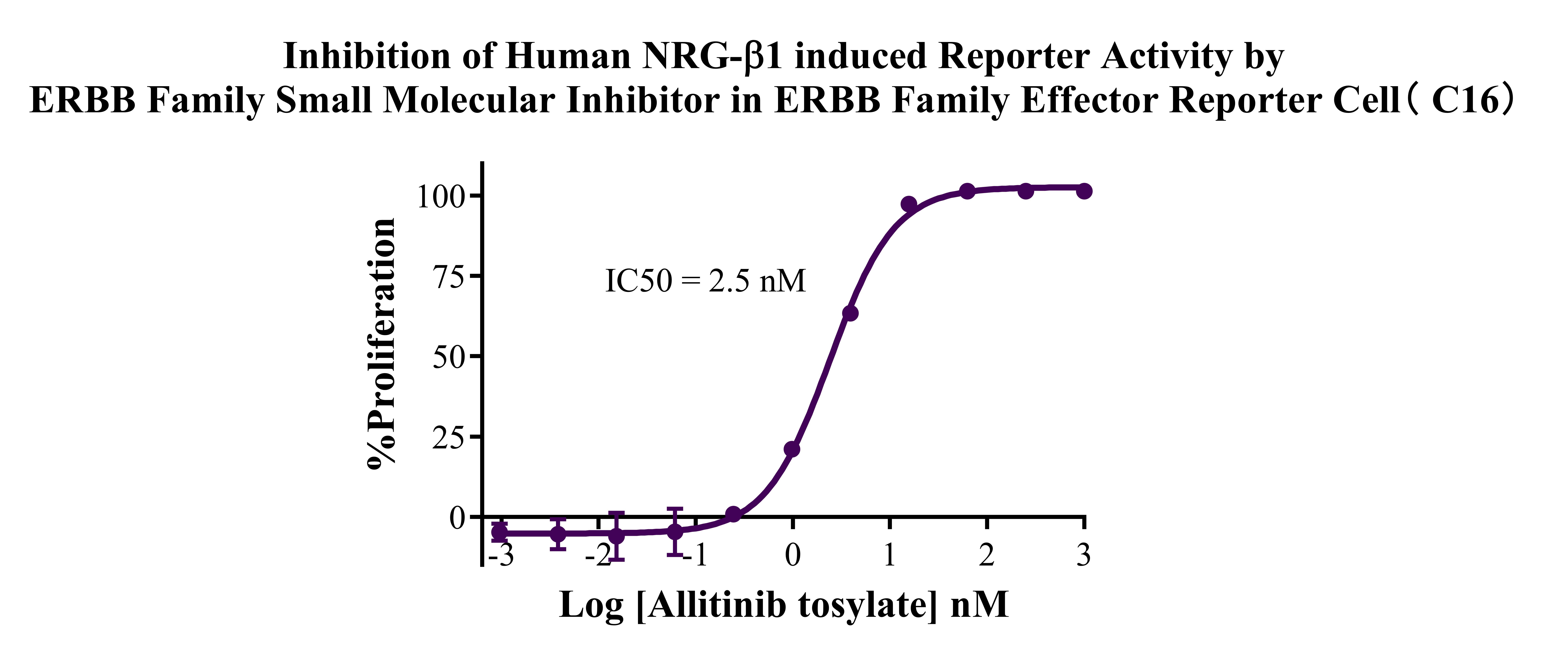 Figure 7. Inhibition of Human NRG-β1 induced Reporter Activity by ERBB Family Small Molecular Inhibitor in ERBB Family Effector Reporter Cell (C16).