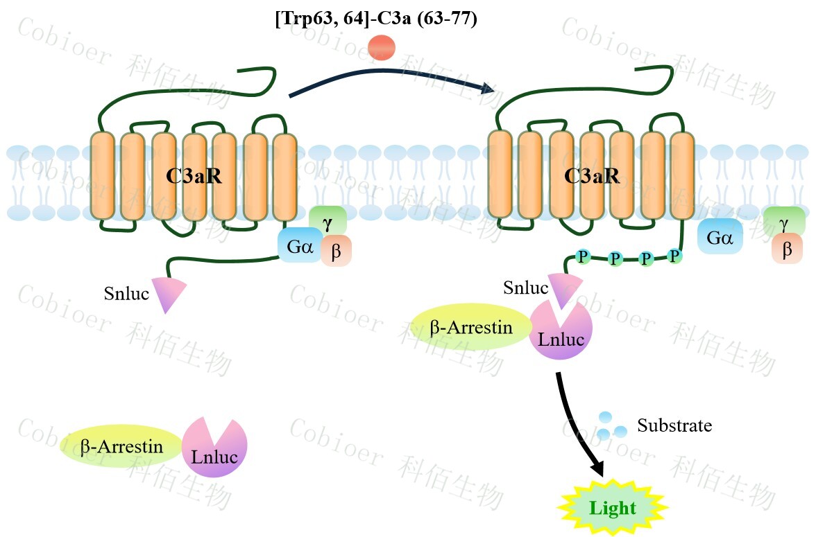 C3aR β-Arrestin CHO 報(bào)告基因藥靶模型很好的模擬了體內(nèi) C3aR/β-Arrestin 的信號轉(zhuǎn)導(dǎo)過程,原理見下圖所示。