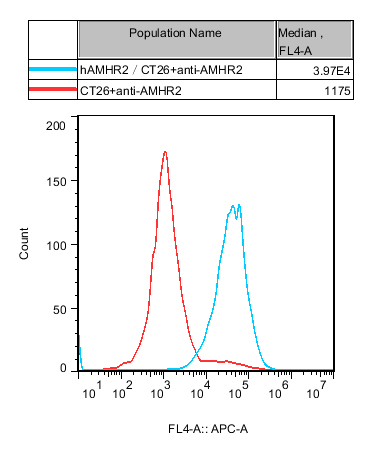 III. Representative Data![]() Figure 1. Recombinant hAMHR2/CT26 stably expressing AMHR2. |