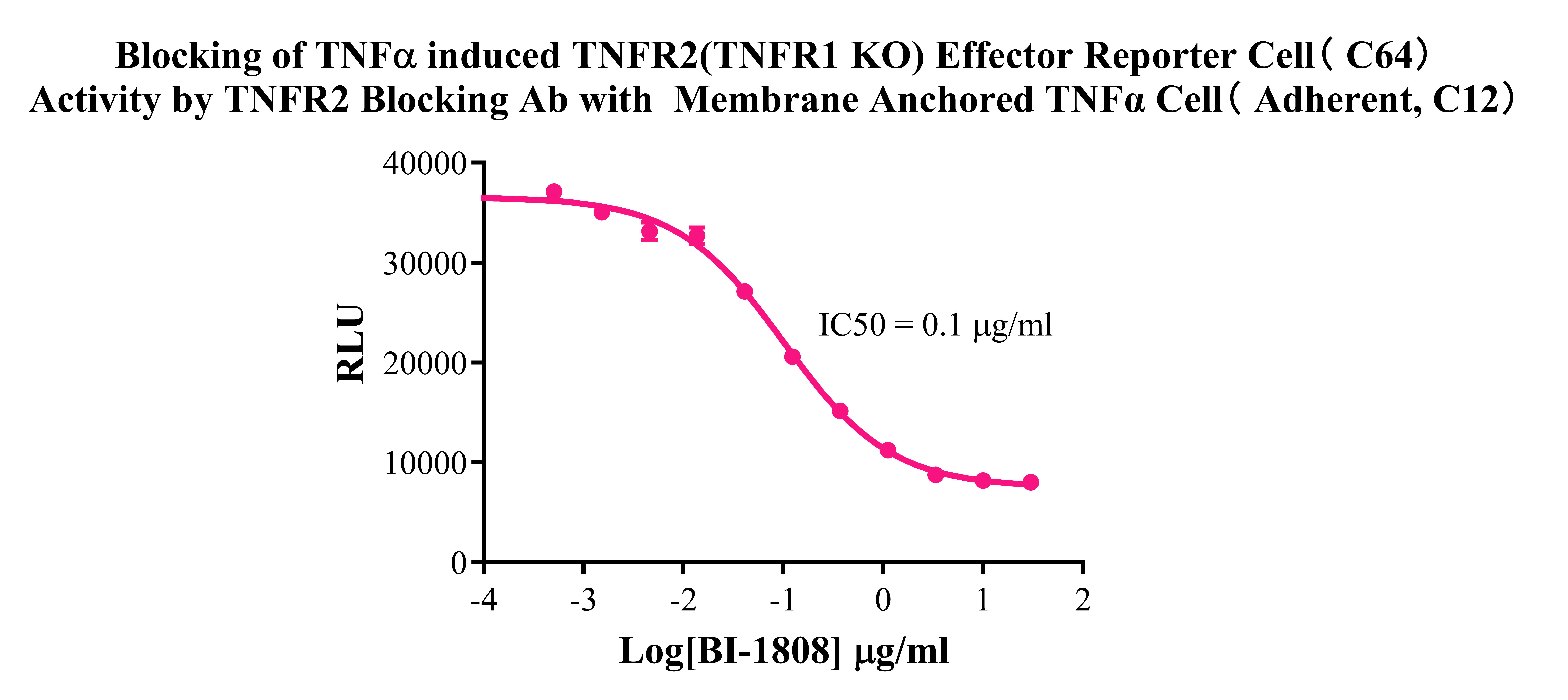 ![]() Figure 1. Sanger of TNFR2( TNFR1 KO) Effector Reporter Cell. ![]() Figure 2. Dose Response of TNFR2 Agonist Ab in TNFR2(TNFR1 KO) Effector Reporter Cell(C64). ![]() Figure 3. Dose Response of TNFR2 Agonist Ab in TNFR2(TNFR1 KO) Effector Reporter Cell(C64). ![]() Figure 4. Blocking of TNFα induced TNFR2( TNFR1 KO) Effector Reporter Cell(C64) Activity by TNFα Neutralization Abs with Membrane Anchored TNFα Cell(Adherent, C12). ![]() Figure 5. Blocking of TNFα induced TNFR2(TNFR1 KO) Effector Reporter Cell( C64) Activity by TNFR2 Blocking Ab with Membrane Anchored TNFα Cell ( Adherent, C12). |