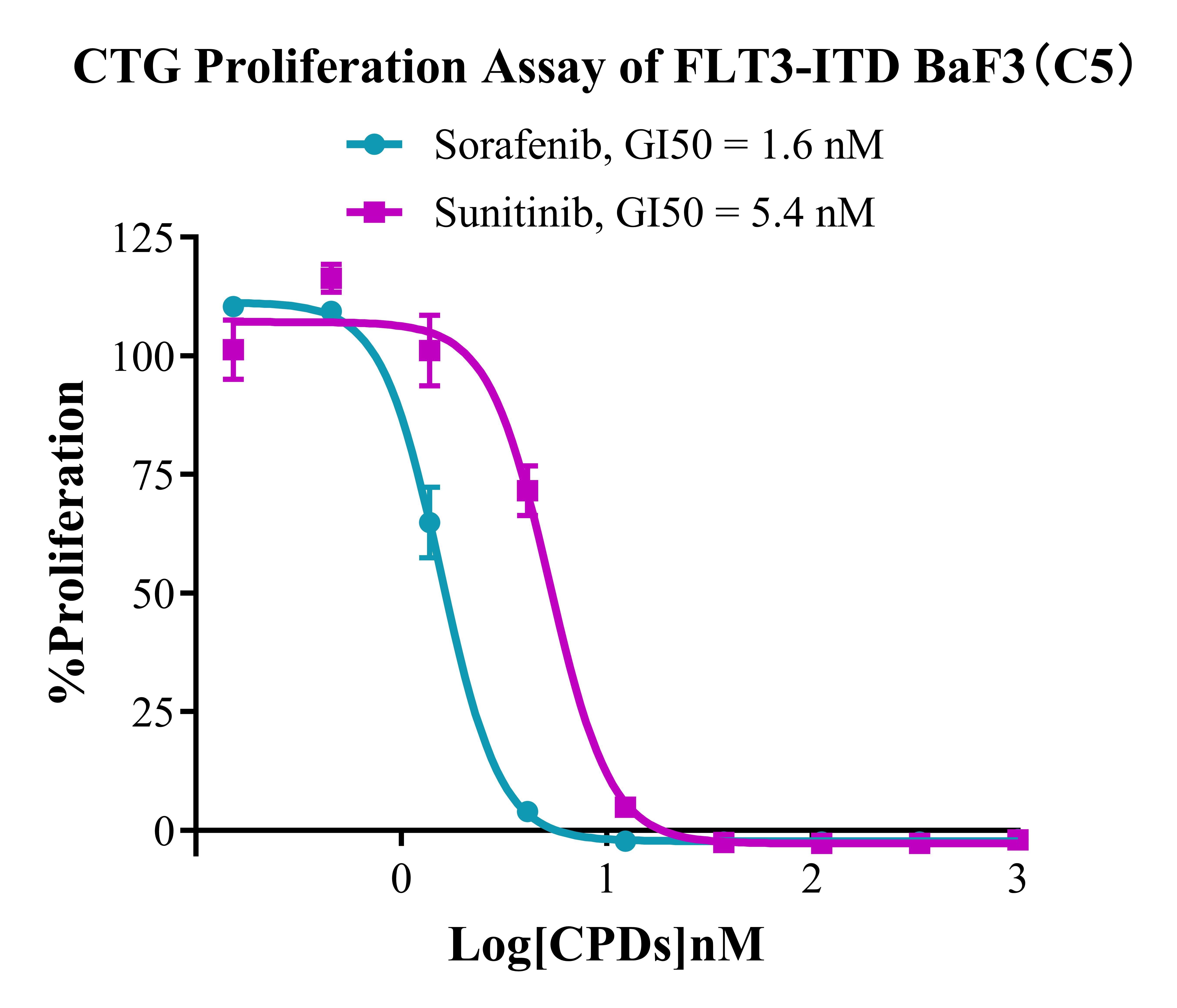 Figure 4. CTG Proliferation Assay of FLT3-ITD BaF3 (C5). |