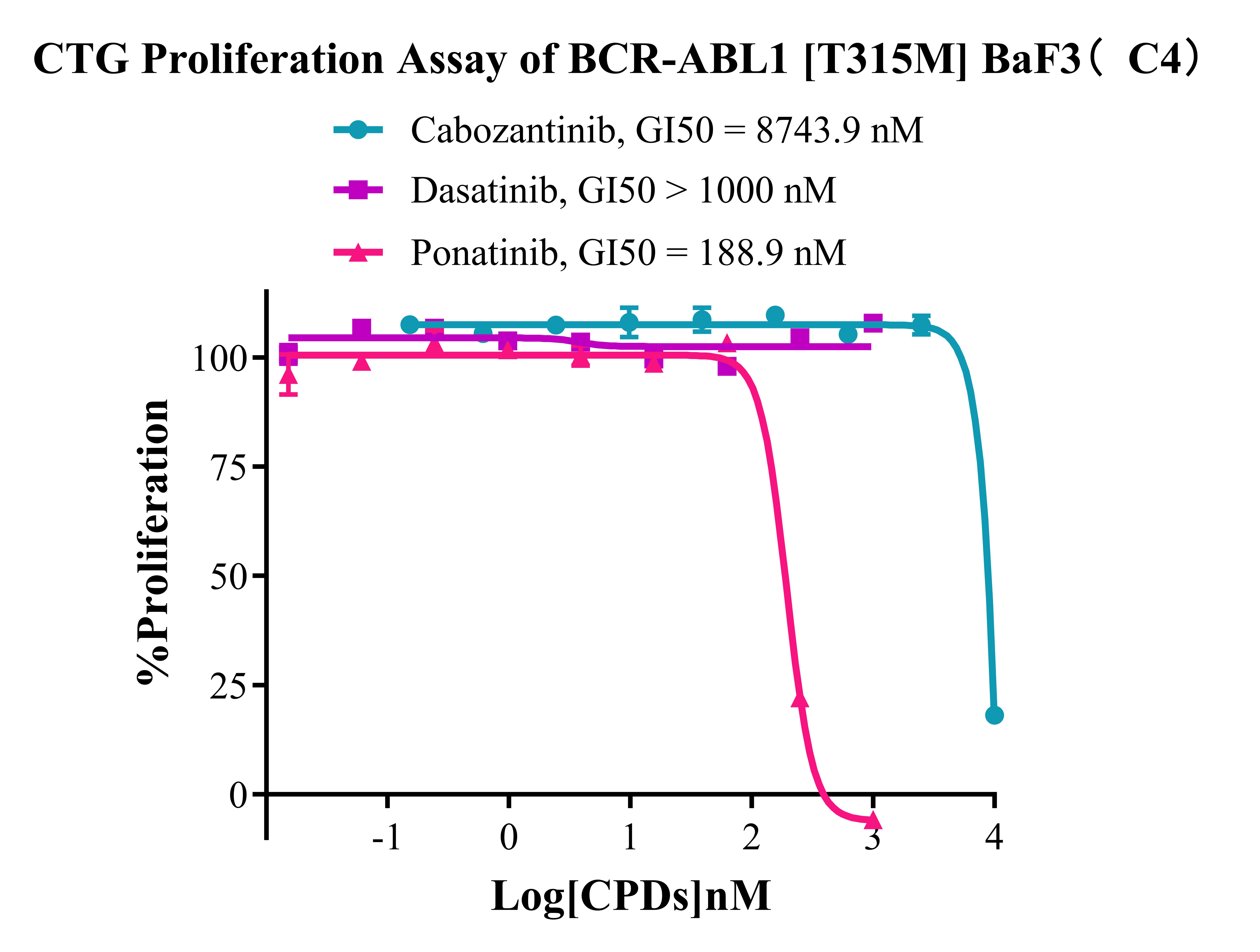Figure 5. CTG Proliferation Assay of BCR-ABL1 [T315M] BaF3 (C4). |