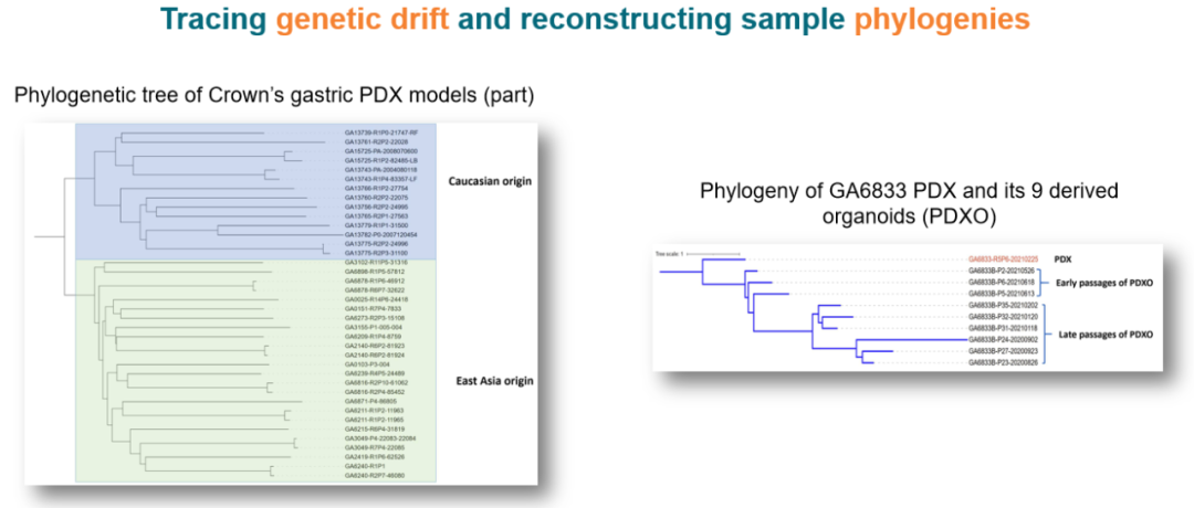 樣本溯源:構(gòu)建PDX模型系統(tǒng)發(fā)育樹(shù)。