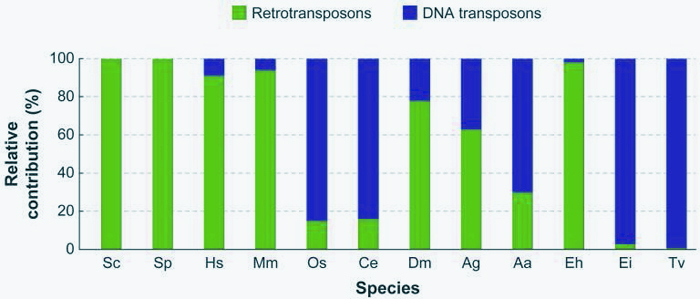 轉(zhuǎn)座因子(Transposable element,簡(jiǎn)稱TE),又稱“跳躍基因”,是指從基因組的一個(gè)位置移動(dòng)到另一個(gè)位置的DNA序列。這類因子最早由遺傳學(xué)家芭芭拉·麥克林托克于50多年前發(fā)現(xiàn)。起初,生物學(xué)家對(duì)麥克林托克的發(fā)現(xiàn)持懷疑態(tài)度。然而,在接下來(lái)的幾十年里,人們逐漸發(fā)現(xiàn),TE不僅會(huì)“跳躍”,而且?guī)缀醮嬖谟谒猩矬w(包括原核生物和真核生物)中,而且通常數(shù)量巨大。例如,TE約占人類基因組的50%,占玉米基因組的90%。