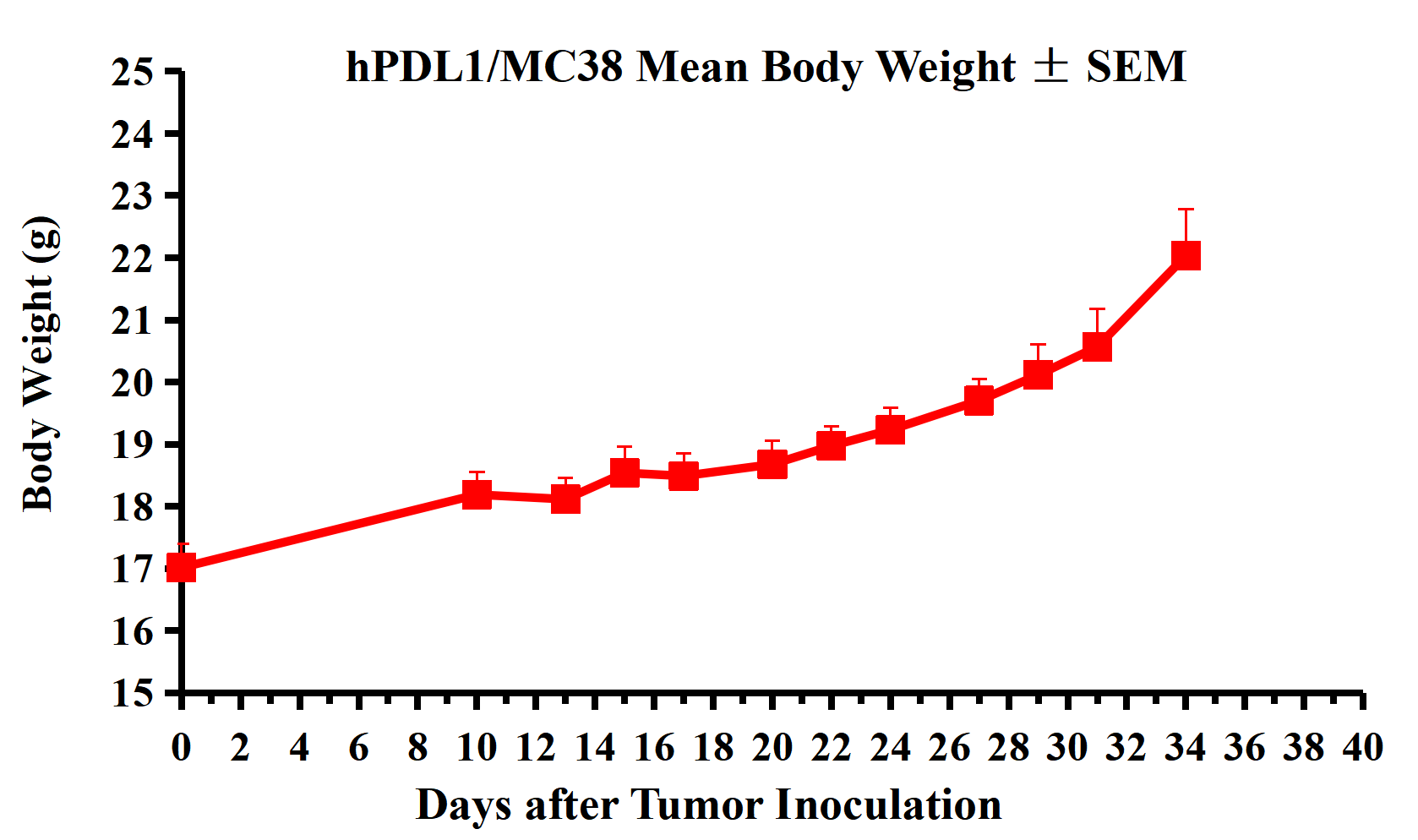 Figure 3. hPDL1/MC38 Mean Tumor Volume ± SEM.